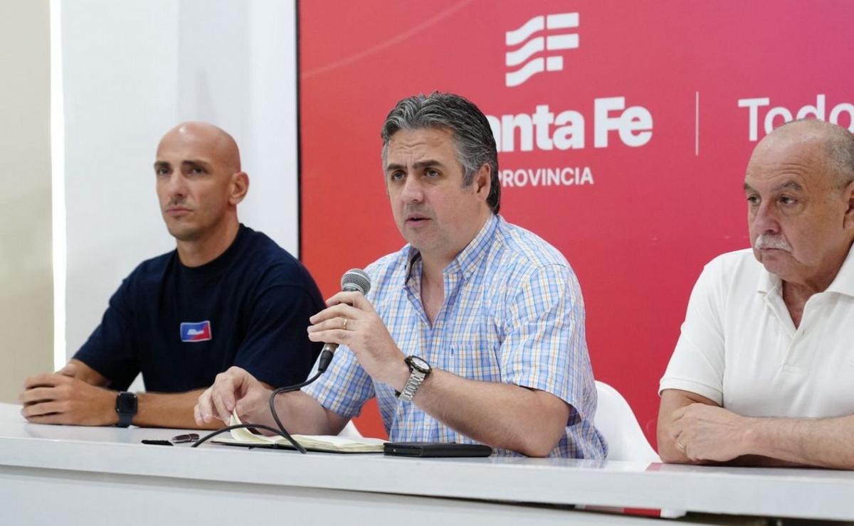 “Venimos atravesando días de protestas de sectores de la fuerza, familiares y allegados que plantean distintas problemáticas. Esas problemáticas motivaron un anuncio de nuestra parte, que es un paquete de medidas. Estamos acá para mejorar la seguridad de los santafesinos”.