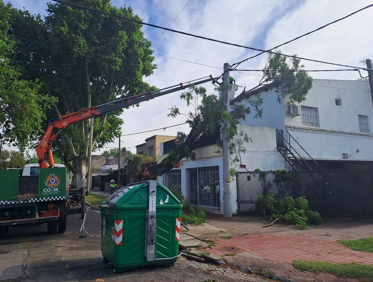 Luego de una noche con ráfagas de 76 km/h y una tormenta con mucha lluvia que dejó unos 18mm de presipitaciones caídas en poco lapso de tiempo cayó un árbol sobre la terraza de una vivienda en la zona norte de la ciudad, según informa el móvil de Cadena 3 Rosario.