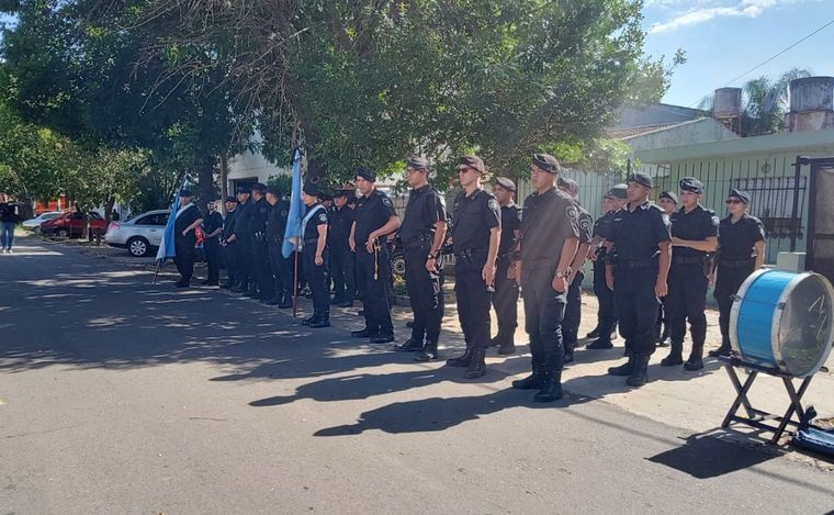 El titular de la Unidad Regional II, Daniel Acosta, participó del cortejo fúnebre del efectivo Leoncio Bermúdez, quien murió el pasado martes en el Hospital Provincial. El agente se encontraba en el tráiler de la fuerza cuando se topó con delincuentes que habían ingresado al efector, presuntamente para liberar a un detenido.