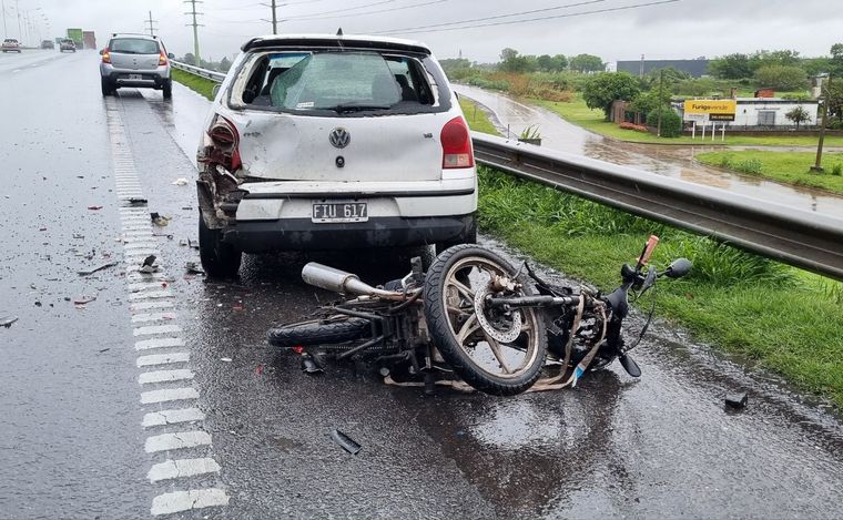 Según indicó el conductor del coche, la moto lo embistió desde atrás a intentar “pasar a un auto por la derecha”.