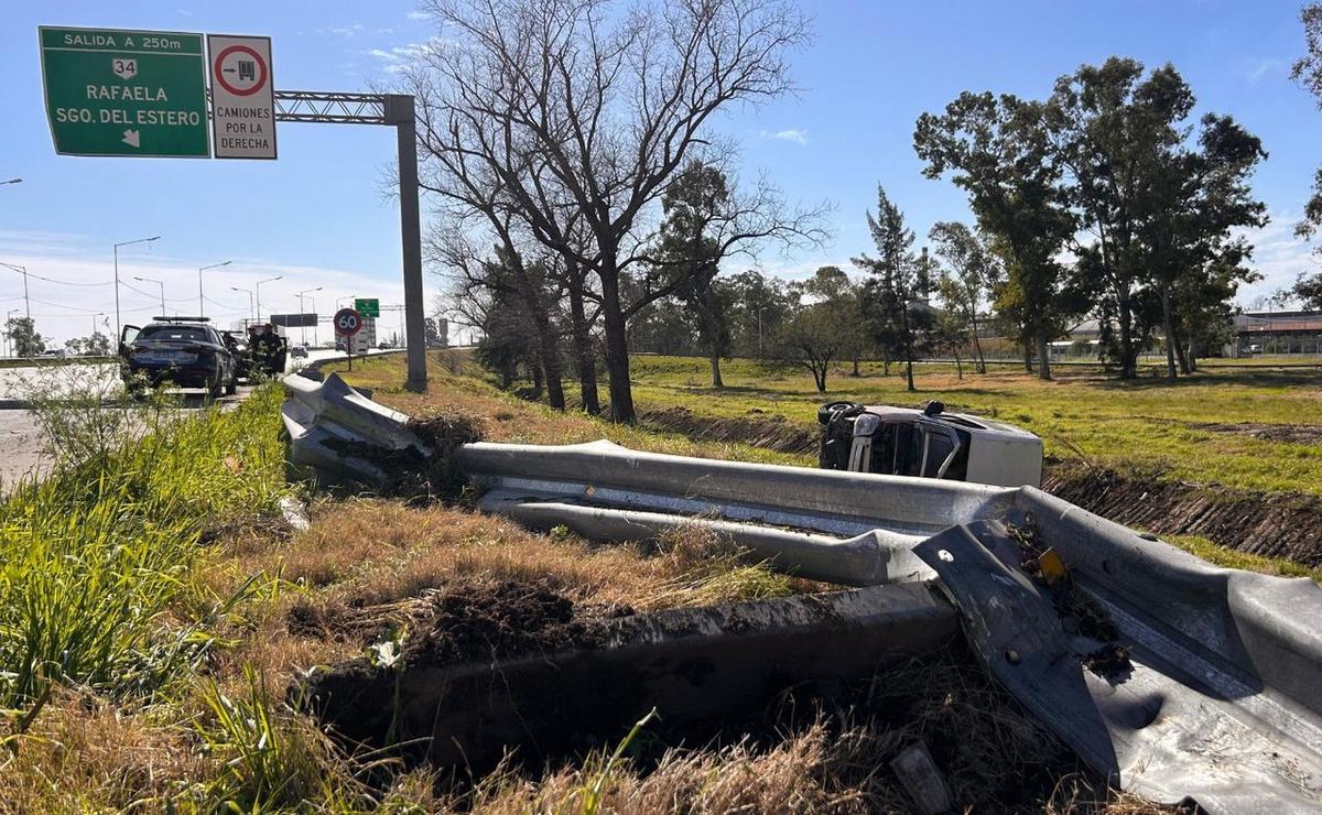 Un utilitario Citroën Berlingo volcó en Circunvalación, a la altura de calle Baigorria. Según las primeras informaciones, el conductor se habría descompensado, cruzó tres carriles, chocó contra el guardarrail y cayó a la banquina. Fue derivado al HECA y está fuera de peligro.