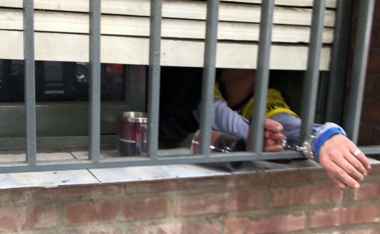 Audio. Un insólito robo en pleno centro de Rosario. Terminó esposado en una reja.