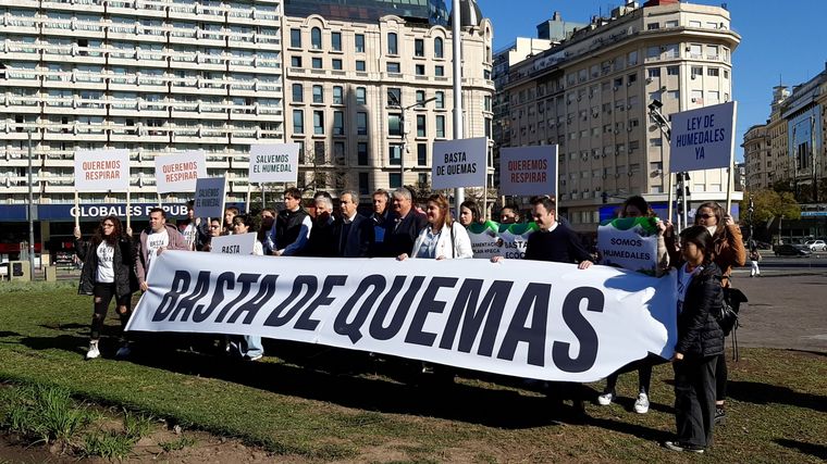 Por la mañana, los jefes comunales, entre ellos el rosarino Pablo Javkin, reclamaron en pleno centro porteño medidas concretas contra los incendios en islas del delta del río Paraná, cuya humareda se extiende por vastas regiones de Santa Fe y de Entre Ríos también.