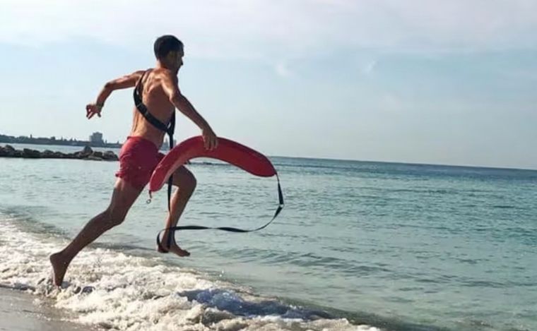 Escucho por la aplicación que había dos personas en peligro, eso era más o menos unos 800 metros de donde yo estaba, así que corrí hasta mi auto, que yo siempre tengo mis elementos de seguridad. Y bueno, corrí hasta el lugar, cuando estoy llegando veo que gente me empieza a hacer señas viéndome que yo estaba llegando con mi tubo de rescate, y cuando miro para el agua en vez de dos personas había un montón de cabezas adentro de una corriente de retorno o una corriente de resaca y bueno, nada, lo único que atiné es a sacarme la remera y tirarme al agua.