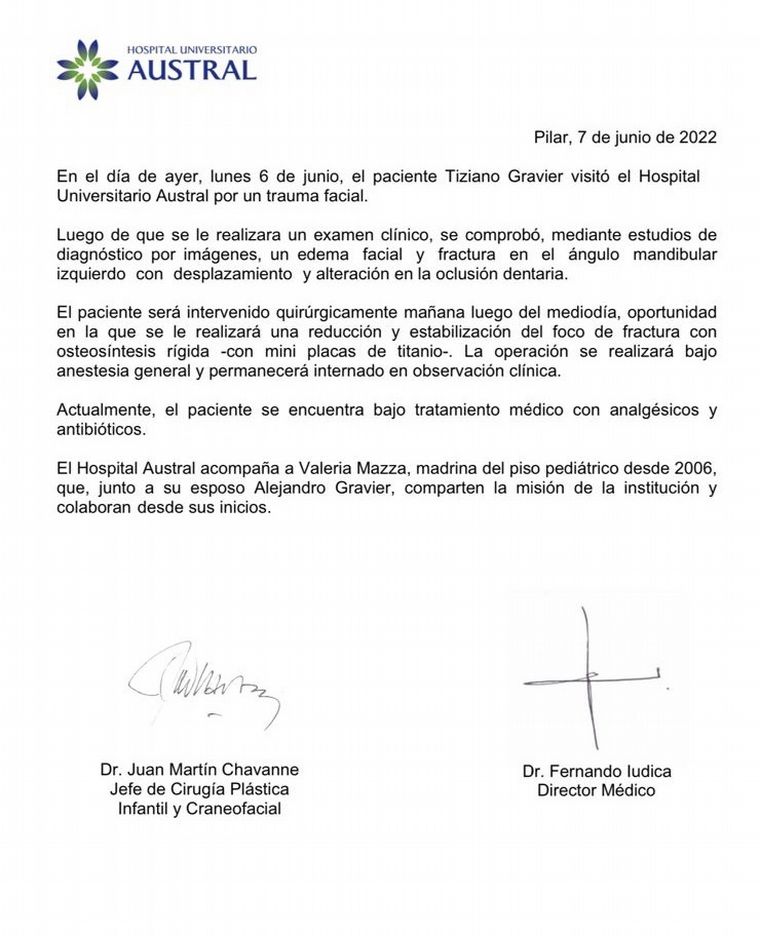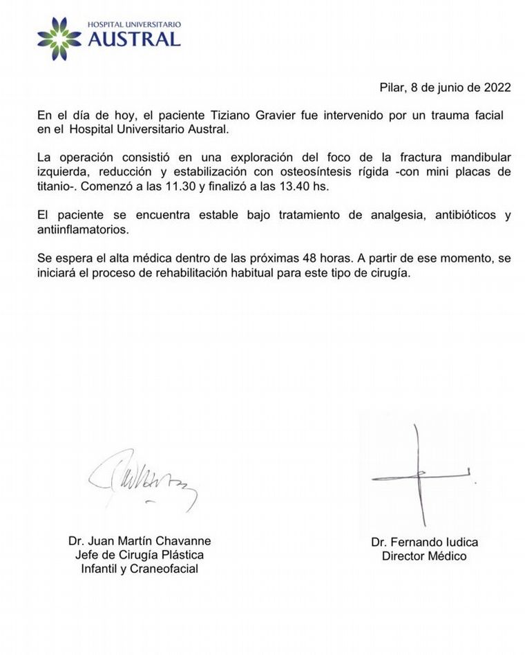 Luego de las declaraciones en Siempre Juntos del abogado Jorge Bedouret, en las que puso en tela de juicio la operación a la que debió ser sometido Tiziano Gravier por la golpiza que sufrió a la salida de un boliche, Germán Pugnaloni, letrado contratado por la familia, consideró que “las lesiones estaban debidamente constatadas”.