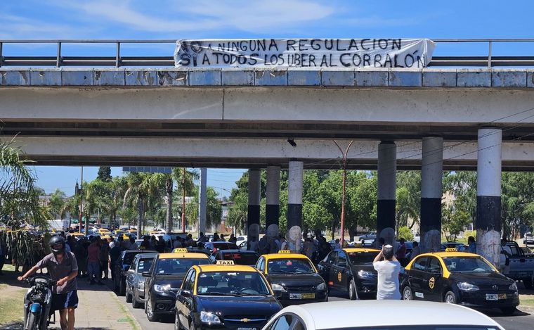 Ayacucho y Circunvalación fue el escenario de una nueva protesta de taxistas y remiseros, que piden más controles para Uber.