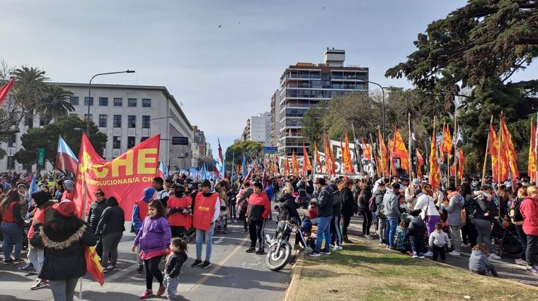 Un grupo de piqueteros comenzó una movilización en la esquina de Oroño y Pellegrini y marchó hacia la sede de Gobierno, ubicada frente a la plaza San Martín. Allí concentrarán hasta que el ministro de Economía, Sergio Massa, atienda a la organización Polo Obrero y otras agrupaciones.