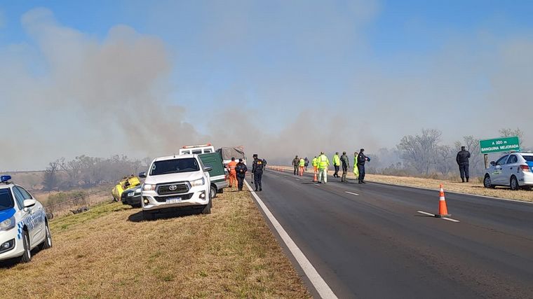 El intenso humo provocó el corte del corredor vial Rosario-Victoria a la altura del kilómetro 14 de la ruta nacional 174, en el mismo lugar en donde chocaron de frente dos camiones en las primeras horas de la mañana.