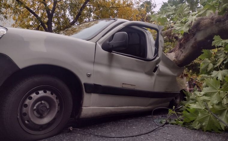 Ocurrió en el macrocentro de Rosario, cuando un plátano se desplomó sobre la parte trasera de un auto que hacía reparto de alimentos. Desde Defensa Civil contaron como rescataron a las personas.
