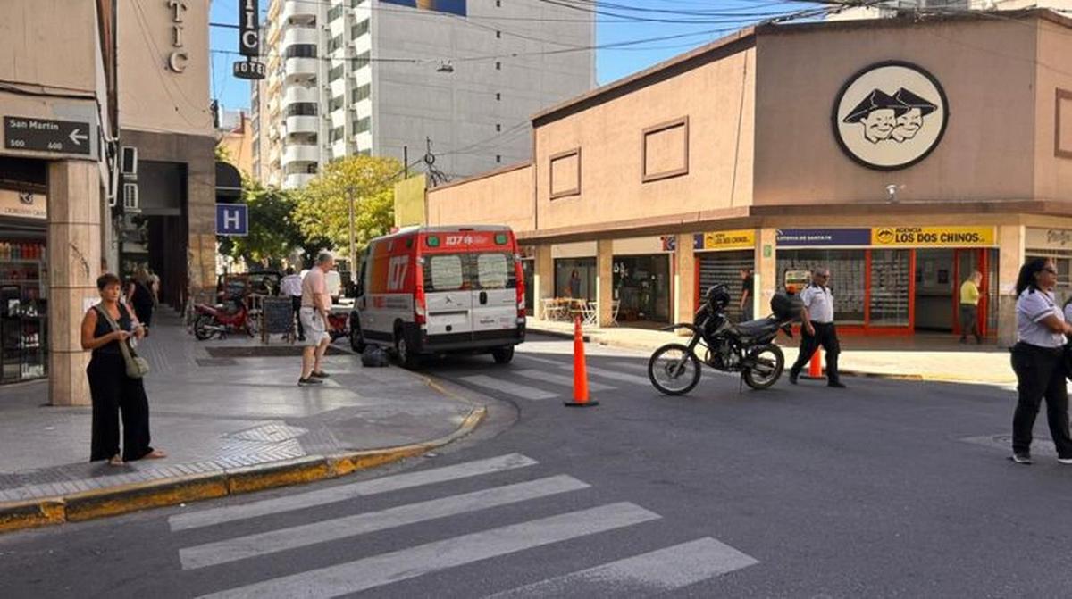 Un siniestro vial se registró en la esquina de San Lorenzo y San Martín, donde una motocicleta embistió a una mujer mayor que cruzaba a mitad de cuadra. Según la información aportada por el Sistema Integrado de Emergencias Sanitarias (SIES), el rodado circulaba a gran velocidad cuando se produjo el impacto y ambos cayeron al asfalto.