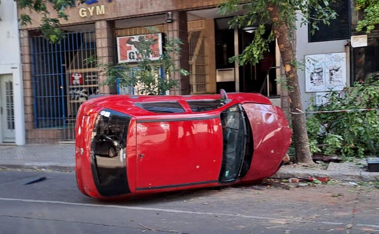 El impacto destrozó la planta y, tras el choque, el auto volcó.