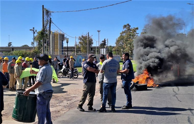 Un grupo de trabajadores nucleados en la Uocra (Unión Obrera de la Construcción de la República Argentina) se manifestó este martes por la mañana en la puerta de la planta potabilizadora de Aguas Santafesinas situada en el ingreso a Granadero Baigorria.