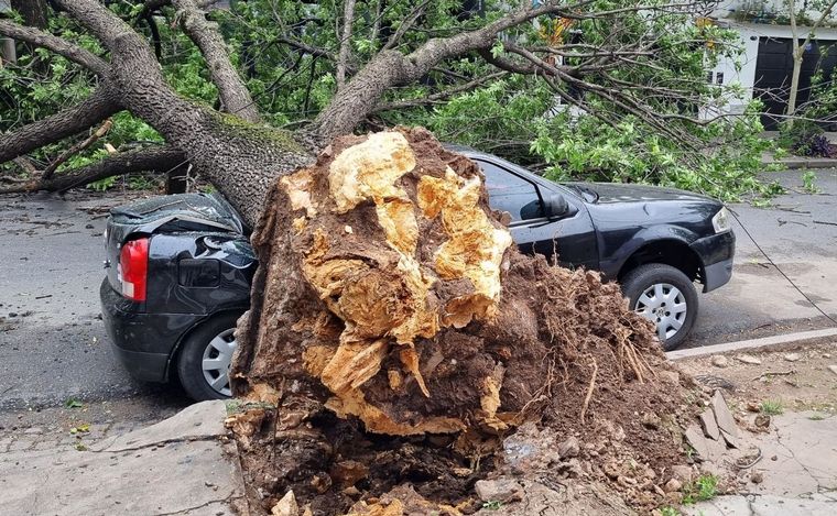 Un árbol de gran porte cayó sobre un auto en Junín y Mar del Plata