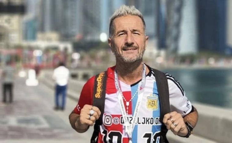 Zeljko se encuentra disfrutando de la Copa del Mundo Qatar 2022 vestido con la dobla casaca, mitad de Argentina y Croacia.