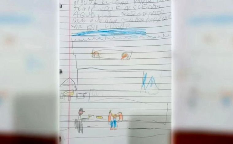 Un niño de 7 años llamado Thiago fue el autor de un dibujo que generó preocupación. En la escuela le pidieron que dibuje en un papel una representación que describa su barrio y él dibujó un robo a mano armada.