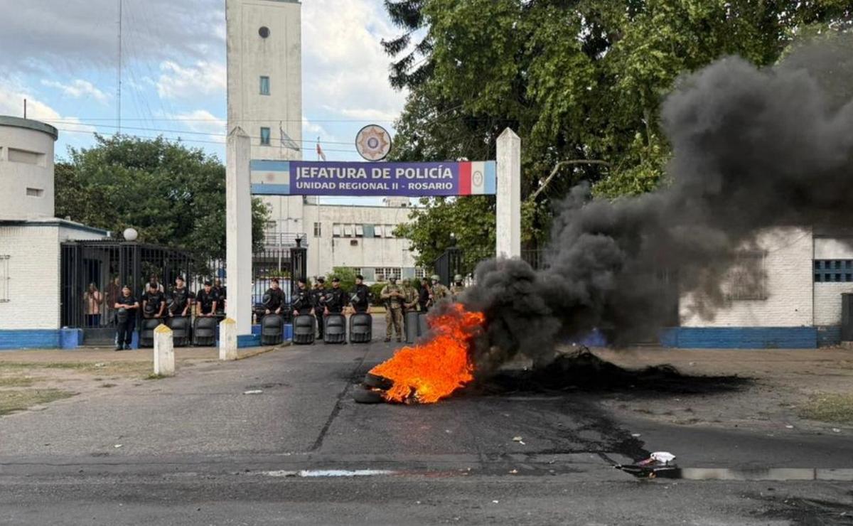 Tras más de 24 horas de protesta policial en la puerta de la Jefatura de Rosario, el reclamo continúa en la sede situada en Ovidio Lagos al 5200.
