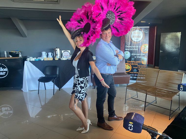 Ambos conductores recibieron algunos tips de la mano de una de las vedettes de la obra para lucir el tocado.