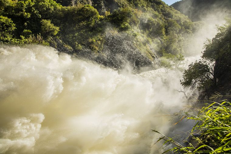 El fenómeno se pudo apreciar el jueves al mediodía en el paredón del dique San Roque. Tras un período de sequía histórica, las anomalías del mes de enero revirtieron la situación hídrica.