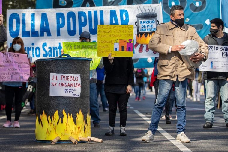 Los manifestantes piden al Gobierno nacional que les brinde asistencia para los comedores de los distintos barrios del país.