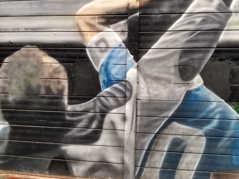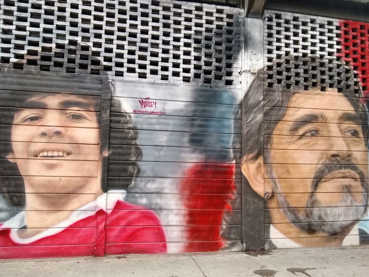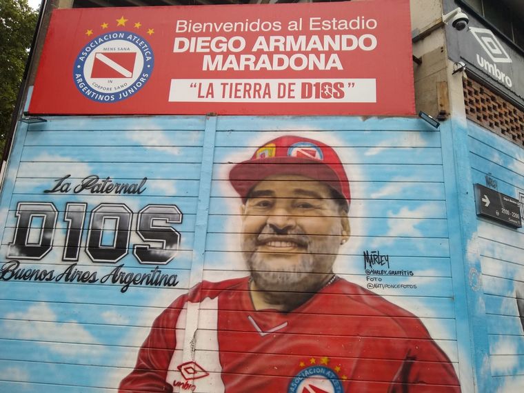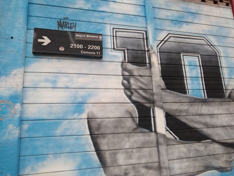 Los alrededores del lugar que fue bautizado con su nombre, tiene postales de distintos momentos de la vida de Diego, en formato de murales.