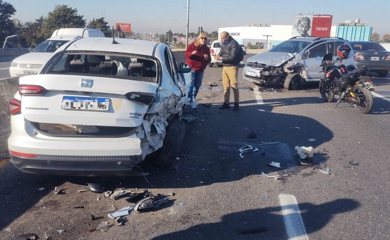 Los vehículos quedaron cruzados sobre la carpeta asfáltica, bloqueando dos de los tres carriles disponibles para circular. Además, en el lugar quedaron esparcidos muchos restos de los vehículos producto de la colisión.