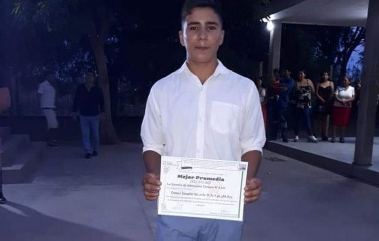 Joaquín Gómez Segundos va a segundo año y salió mejor promedio de toda su escuela técnica Jesús de Nazaret de Pichanal. Sueña con ser médico o gendarme.