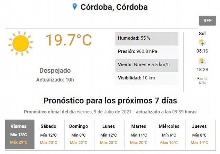 La temperatura más alta en este mes en Córdoba fue un 28 de julio de 1997, en el que la máxima superó los 34°.