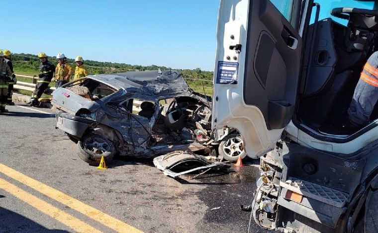 El siniestro ocurrió sobre el puente del arroyo Mal Abrigo. Las víctimas fatales viajaban a bordo de un Renault Clio que colisionó de frente con un camión Scania. La ruta permanece cortada.