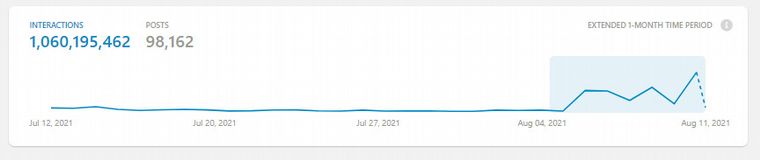 En Instagram, el total de interacciones en los últimos 7 días supera los mil millones según Crowdtangle. Este número es la suma entre los compartidos, me gusta, comentarios y publicaciones.