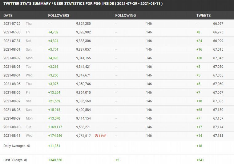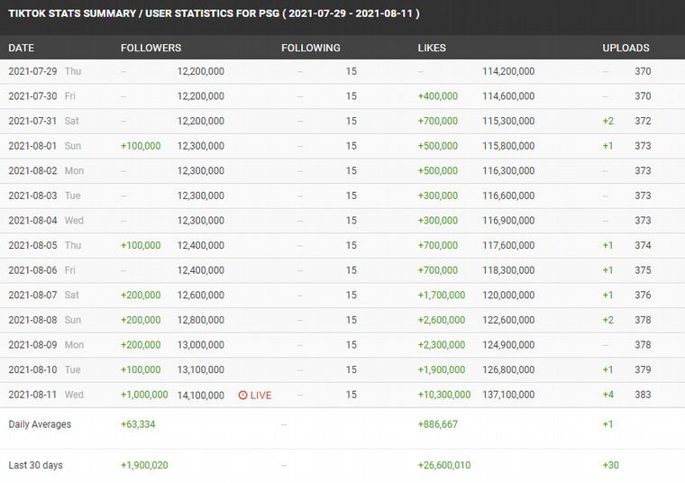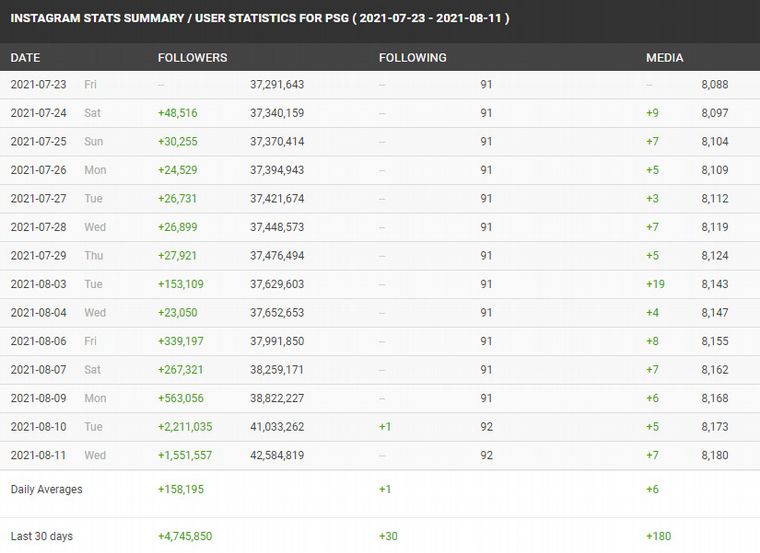 Las redes sociales del PSG también demostraron un gran incremento de interacciones, pero fundamentalmente de seguidores llegando a más de 8 millones de nuevos usuarios en sus cuenta, según el sitio Social Blade.