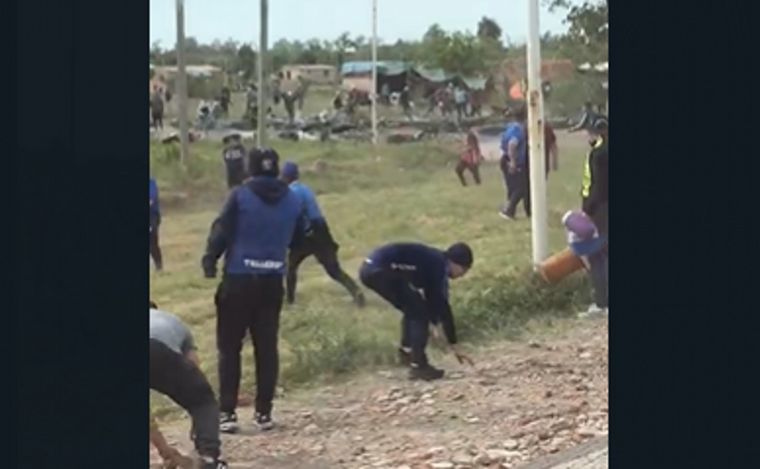 Enfrentamientos entre quienes cortaban la ruta 11, a la altura de Tacuarendí y simpatizantes de @CATalleresdecba pic.twitter.com/ZsBOJSNiEd