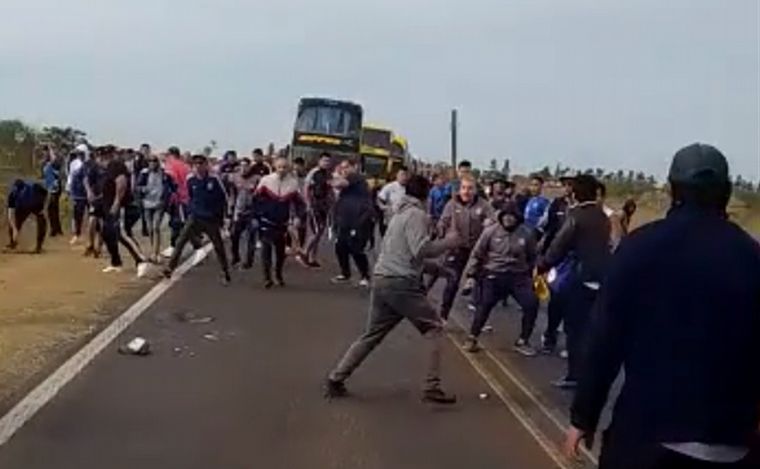 Un violento enfrentamiento se produjo este miércoles entre hinchas de Talleres de Córdoba con manifestantes del Movimiento Teresa Rodríguez (MTR), quienes estaban cortando la Ruta 11, a la altura de Tacuarendí (Santa Fe), ubicada a 124 kilómetros de Resistencia.