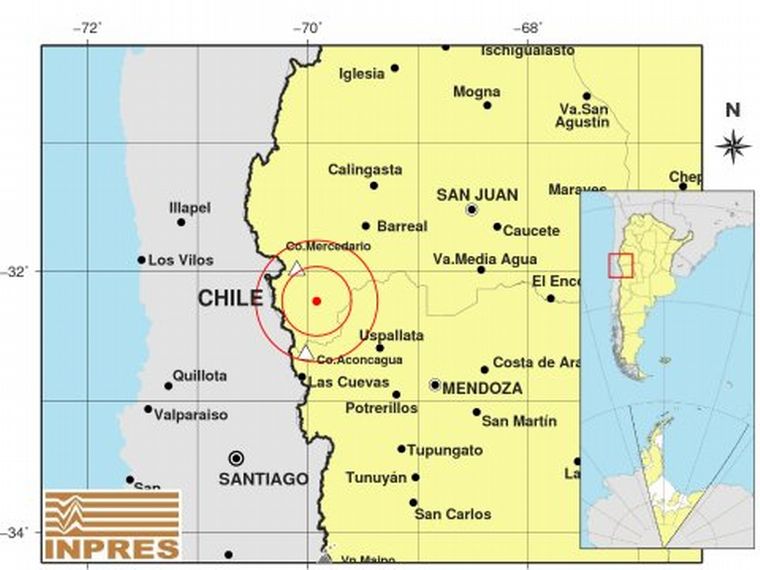 Según el Instituto Nacional de Prevención Sísmica (Inpres), el movimiento telúrico se registró a las 9.48 y se ubicó a 67 kilómetros al noroeste de Uspallata.