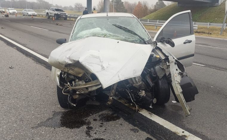 El conductor del camión expresó en diálogo con Cadena 3, que "el automóvil habría mordido la banquina e impactó con la parte trasera del camión".