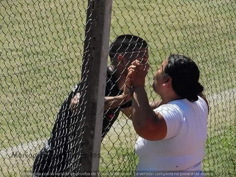 Alex Vigo hace unos años abrazando a su mamá a través del alambrado (Foto: María Figueredo)