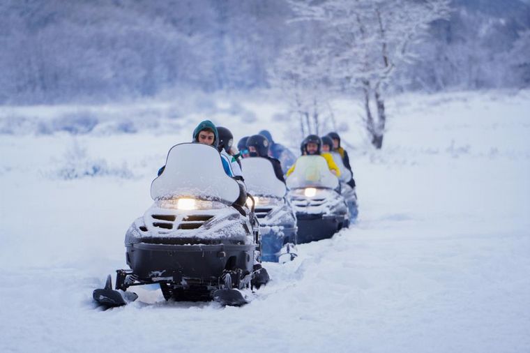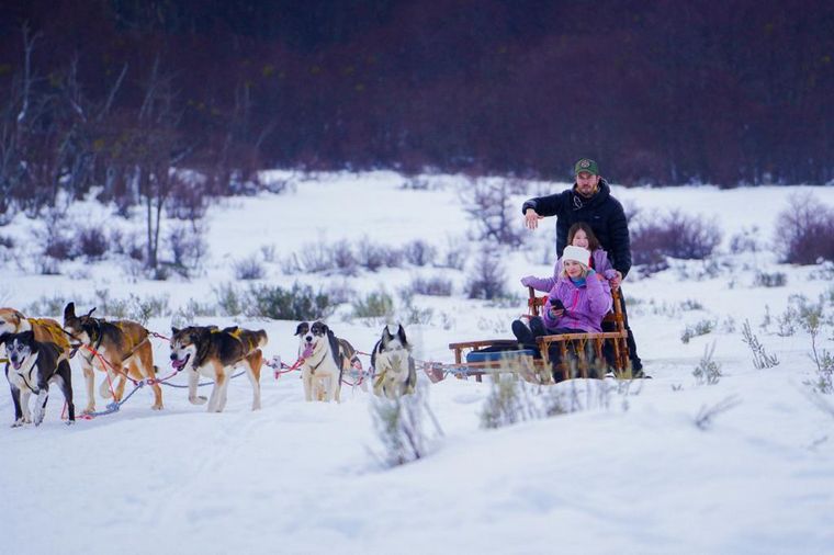 En temporada invernal turistas y locales pueden realizar circuitos en motos de nieve, caminatas con raquetas y el tradicional paseo en trineos tirados por perros.