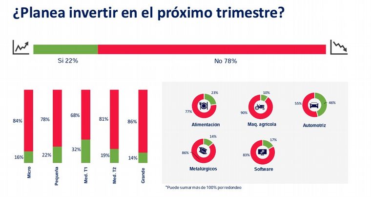 -El 78% no planea invertir en el próximo trimestre, porcentaje que se eleva al 86% para las empresas grandes.