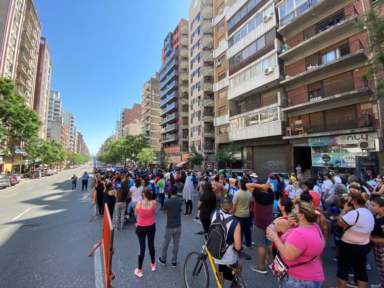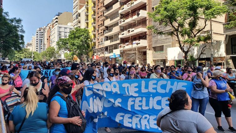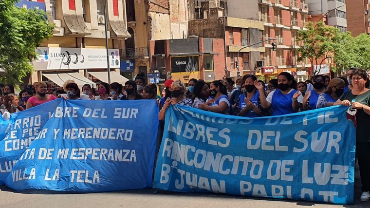 Los manifestantes transitan por bulevar San Juan hacia Chacabuco. Se concentraron en la sede del Ministerio de Desarrollo Social. Piden ayudas sociales para fin de año.