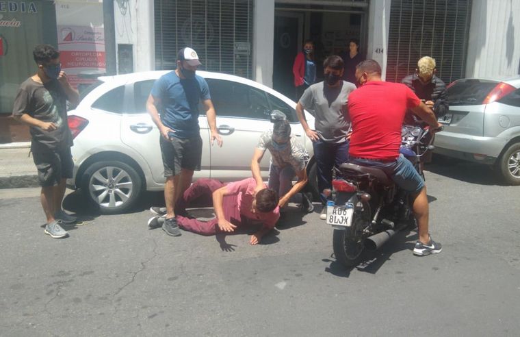 “Venía corriendo y justo cuando dobló chocó con una moto. Venía un hombre caminando que lo acogotó del cuello”, dijo al móvil de Cadena 3 uno de los testigos.