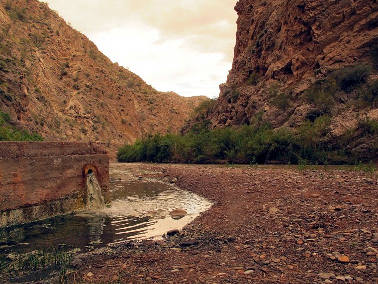 Se trata de una localidad ubicada a 29 kilómetros de Jáchal, en San Juan. El periodista Ariel Videla contó que el nombre hace referencia a las aguas termales del lugar, las que cuentan con una importante cantidad de minerales.