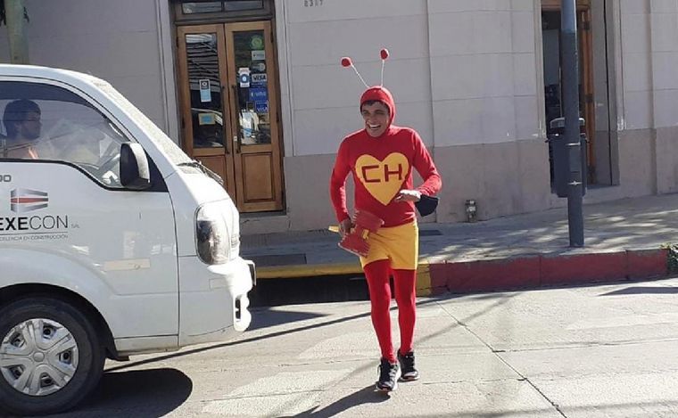 Fernando Javier López Melano es un cordobés de 43 años y padre de tres hijos. Cinco años atrás se calzó el traje de superhéroe y salió a las calles disfrazado como "el Chapulín Colorado" para ganarse el sustento y sostener a su familia.