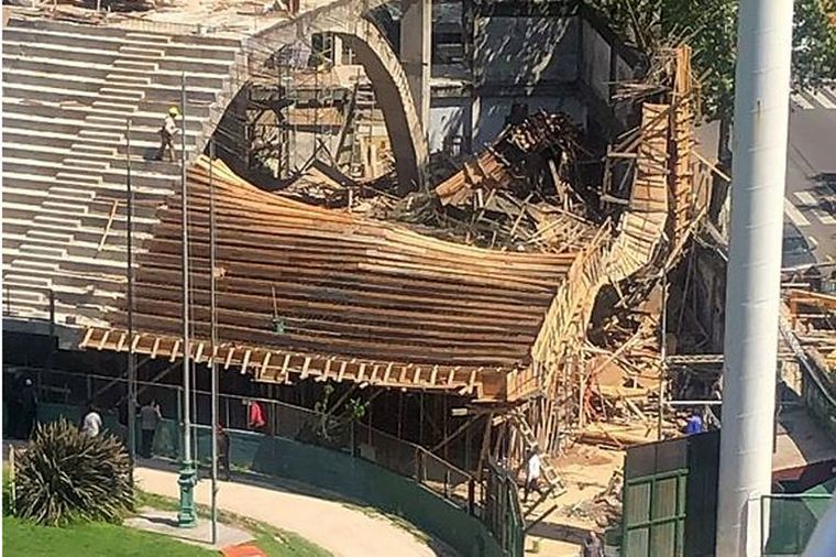 El sector de la tribuna que se derrumbó es de madera y estaba siendo llenado con hormigón desde la calle por una grúa que posee un brazo para cumplir con esa obra.