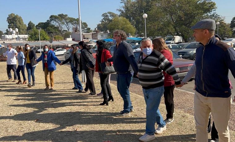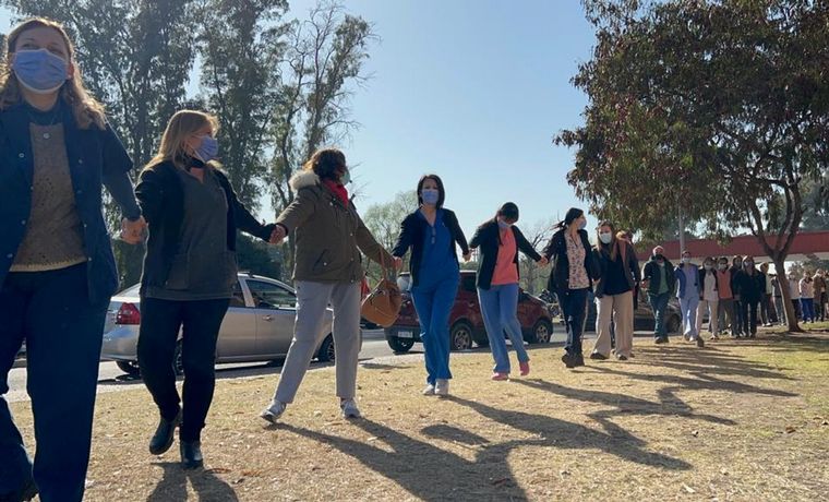 Personal médico y administrativo realizó este lunes un abrazo simbólico al Hospital Neonatal de Córdoba, envuelto en el escándalo que se desató tras la muerte de bebés recién nacidos.