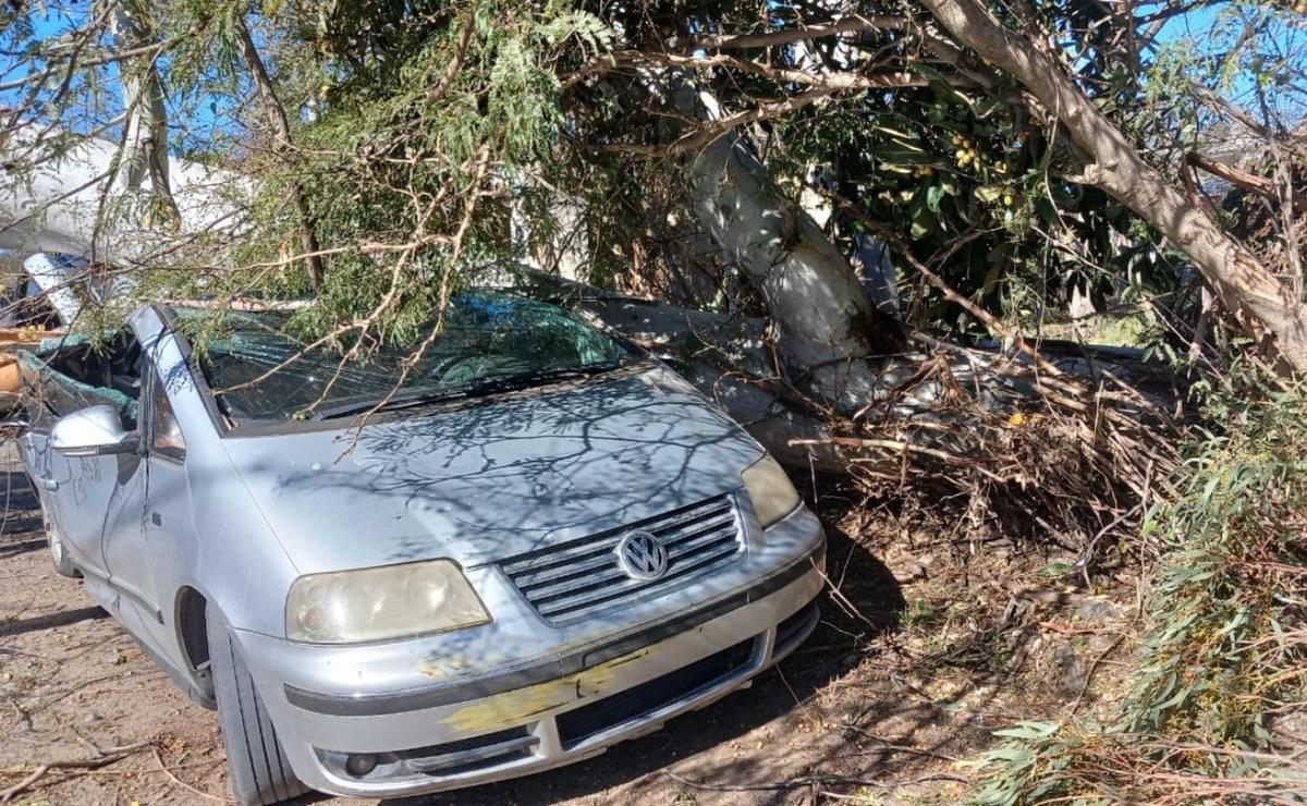 Audio. Un árbol cayó sobre un auto y hubo un principio de incendio en La Calera