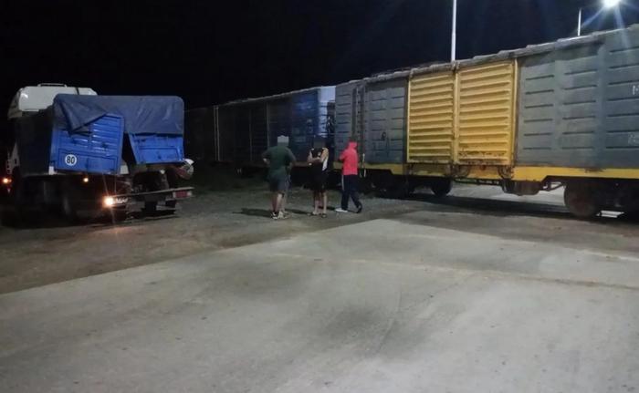 El conductor del camión intentó atravesar las vías férreas y colisionó con una formación de vagones de carga.
