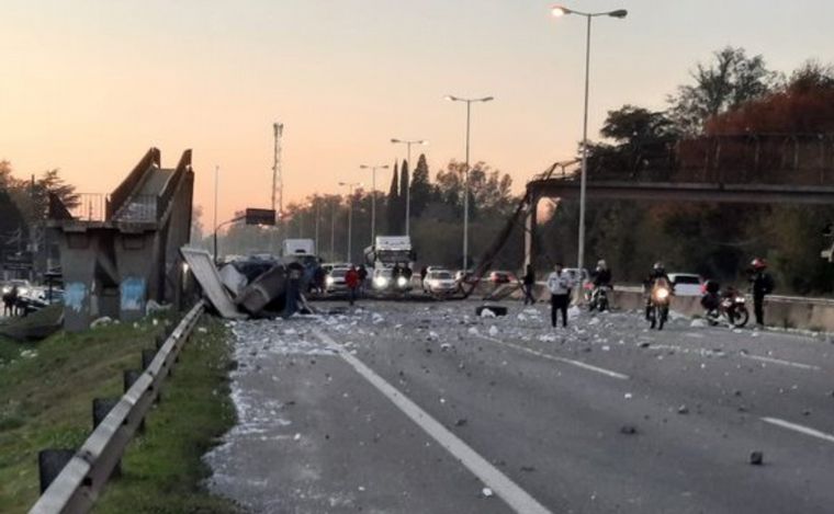 Un puente peatonal se derrumbó este lunes a la altura del kilómetro 61 y medio de la Autopista Panamericana, mano a provincia de Buenos Aires, Ramal Pilar, tras ser embestido por un camión.