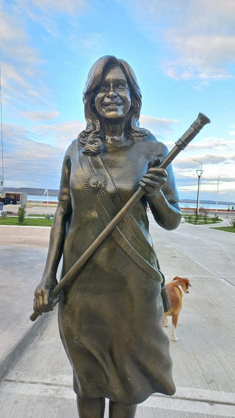 Una estatua de la vicepresidenta Cristina Kirchner fue vandalizada este miércoles en el Paseo de los Presidentes en Río Gallegos.