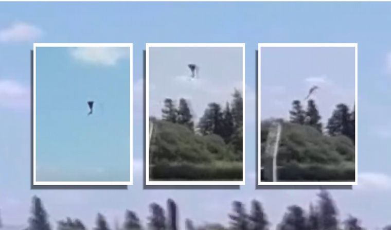 En ese caso, lo que se ve en el video es el paracaídas principal, que no había llegado a abrirse, motivo por el cual Javier, que es paracaidista profesional, accionó el de reserva.