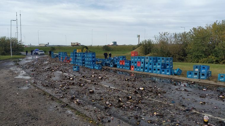 "Convocamos a personal de Camino de las Sierras para hacer el barrido, son unos 300 metros regados de cerveza y botellas", contó y agregó que, si bien el camión no volcó, investigan las causas del incidente.