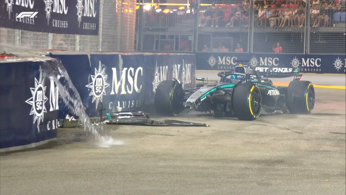 George Russell sacó las banderas amarillas poco después, tras impactar con las barreras en la curva 16 y dañando el morro de su W16. «Fue raro», comentó al regresar a boxes, mientras se izaba la bandera roja para retirar los restos de la pista.